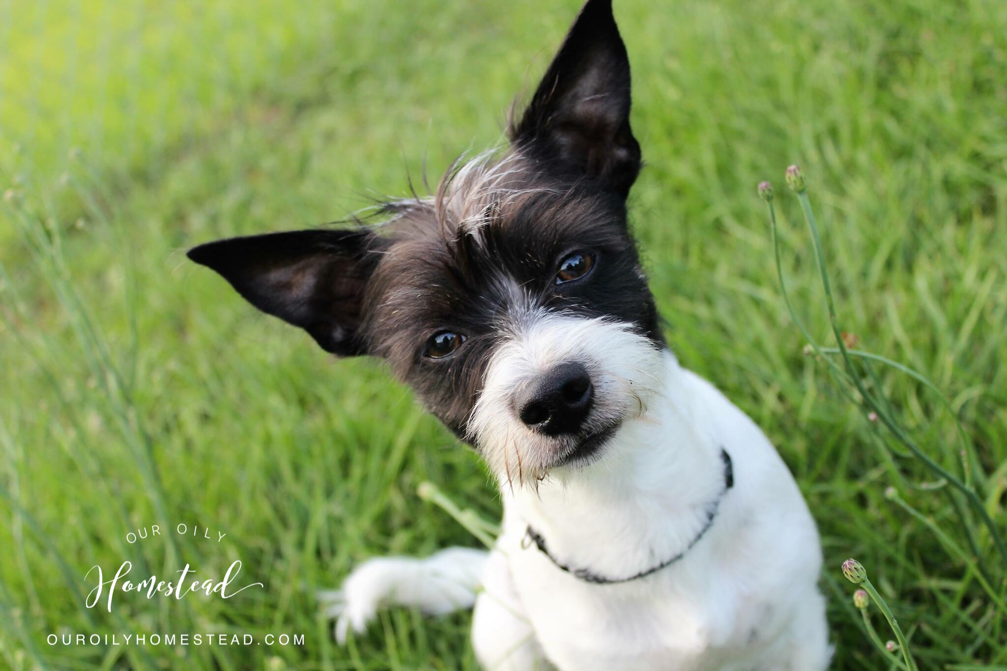Meet Mike (Michael Joseph), our “farm dog”! He is really just a spoiled furry kid, but don’t tell him that! He thinks the chickens are his to take care of and loves hunting crickets with them!